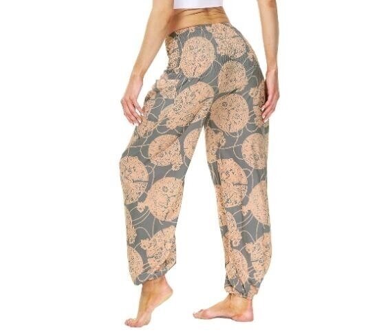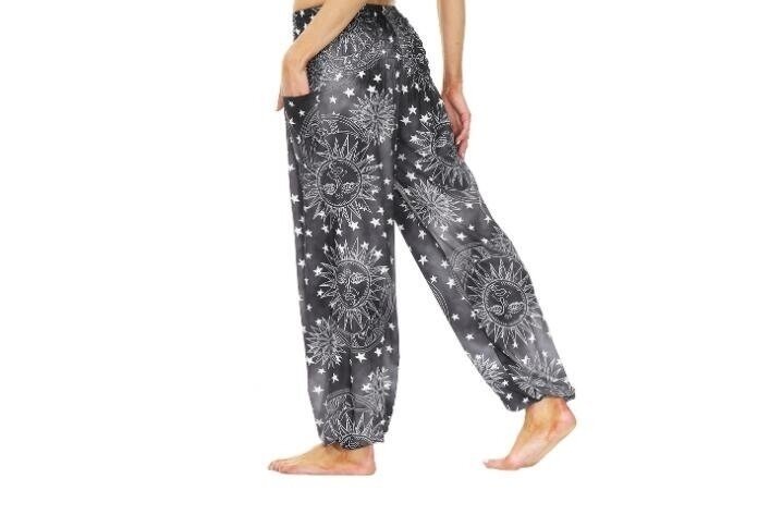 • Features: Bohemian harem pants, elastic smocked waist, ankle length, relaxed fit, one side patch pocket, elastic leg hem, one size fits S-L.